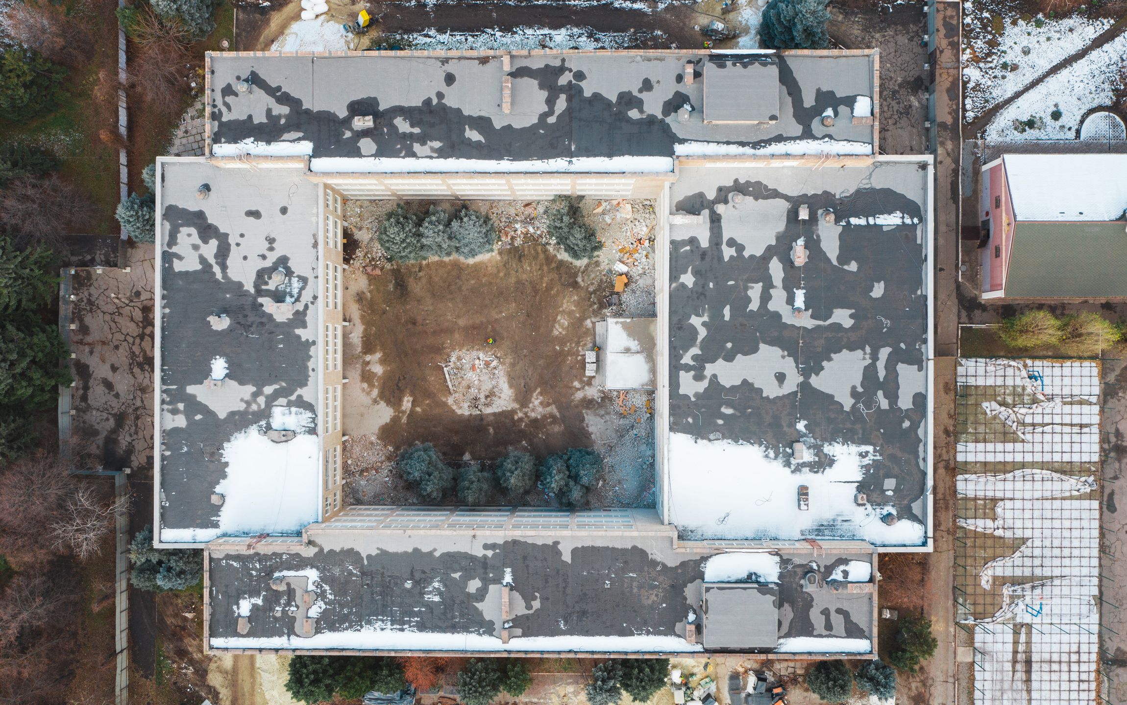 - Буде виконано роботу з благоустрою території, влаштування пішохідних доріжок, автомобільних проїздів, вимощення входу до будівлі, влаштування покриттів спортивних майданчиків.