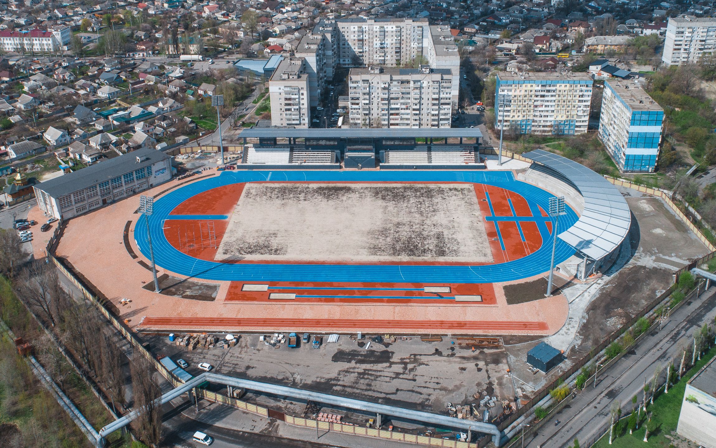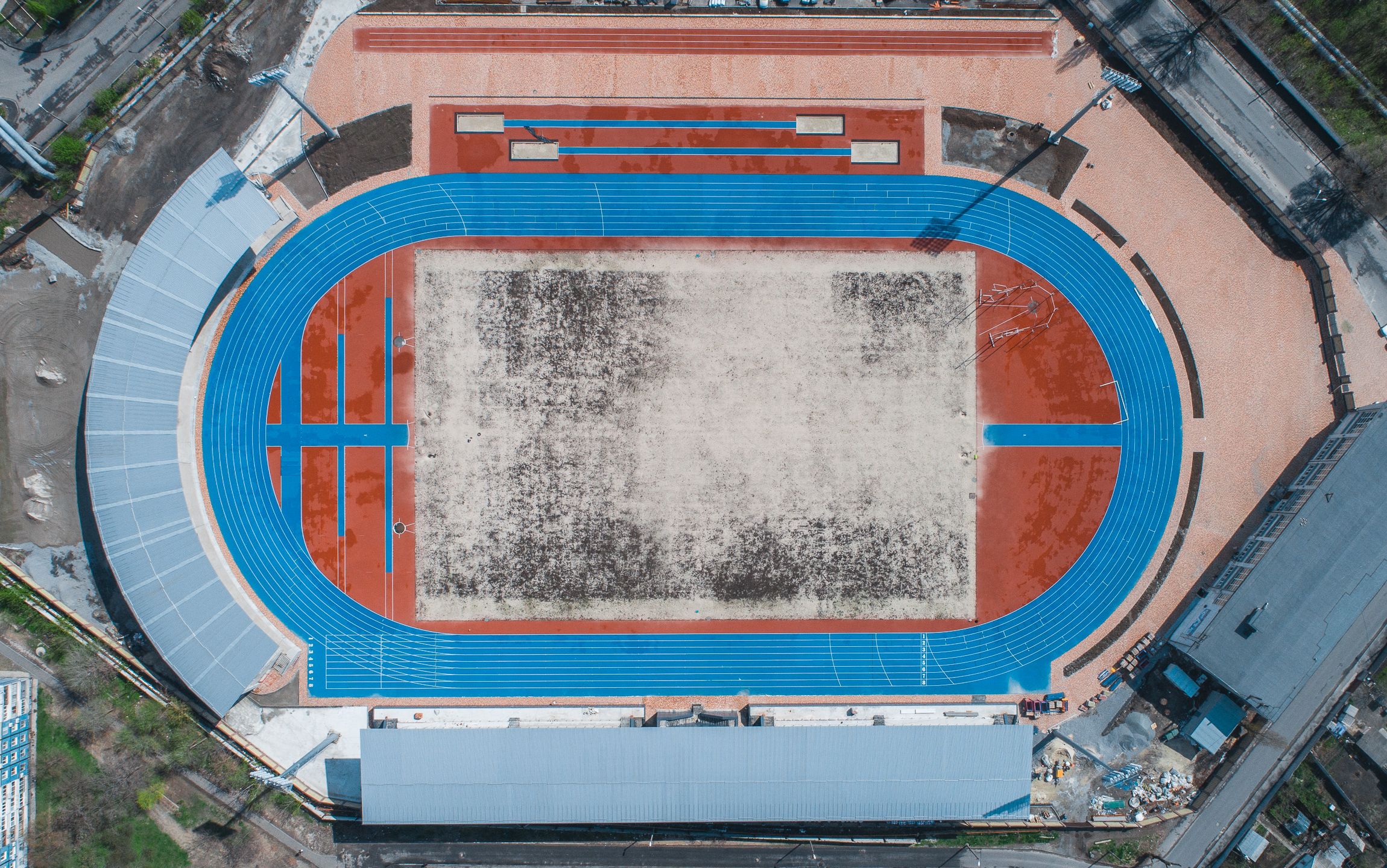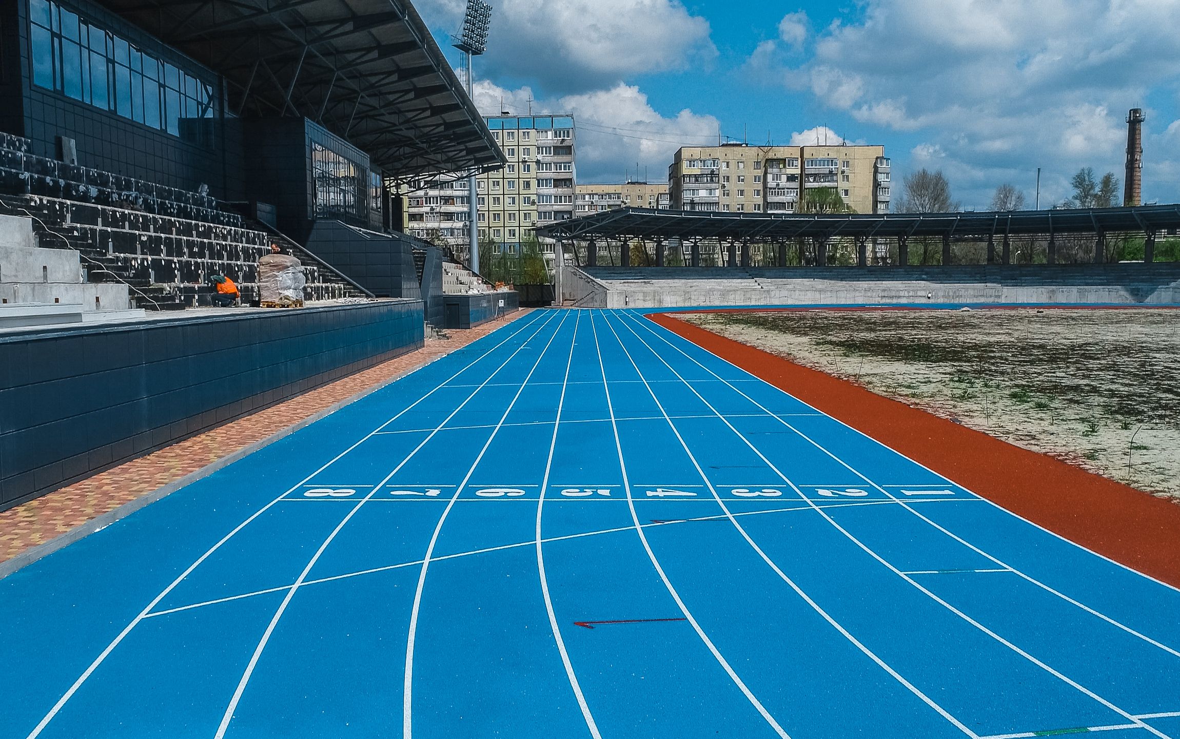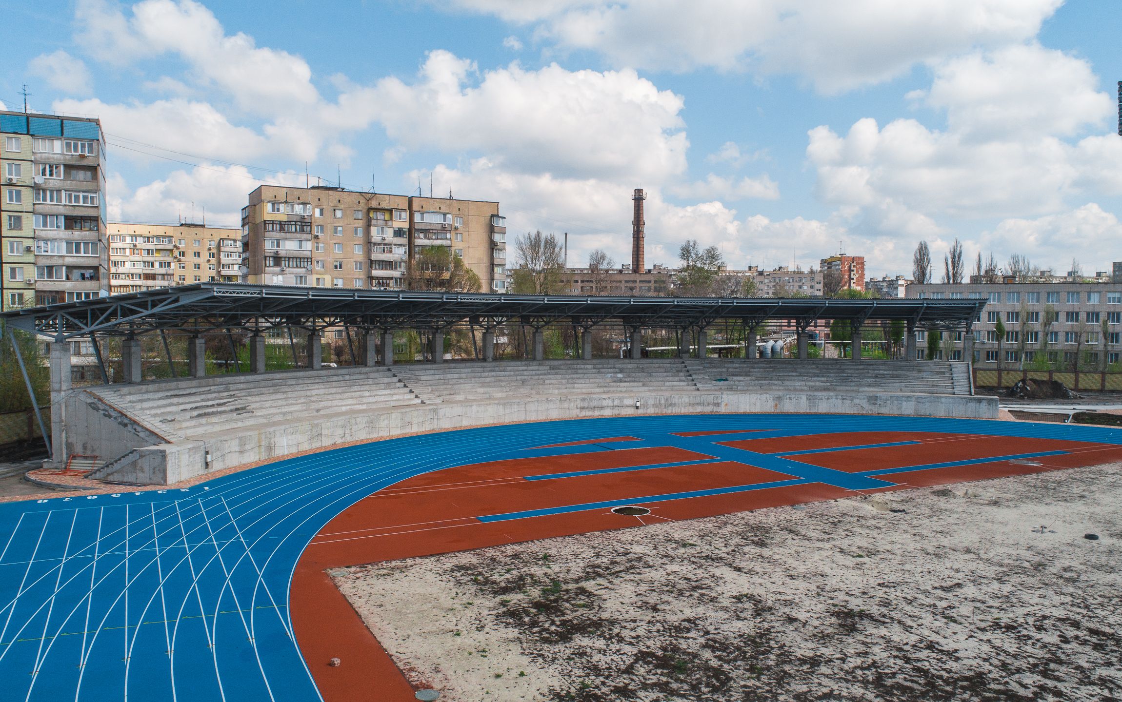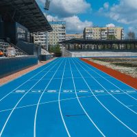 - укладено легкоатлетичні гумові доріжки німецького виробника у два шари;