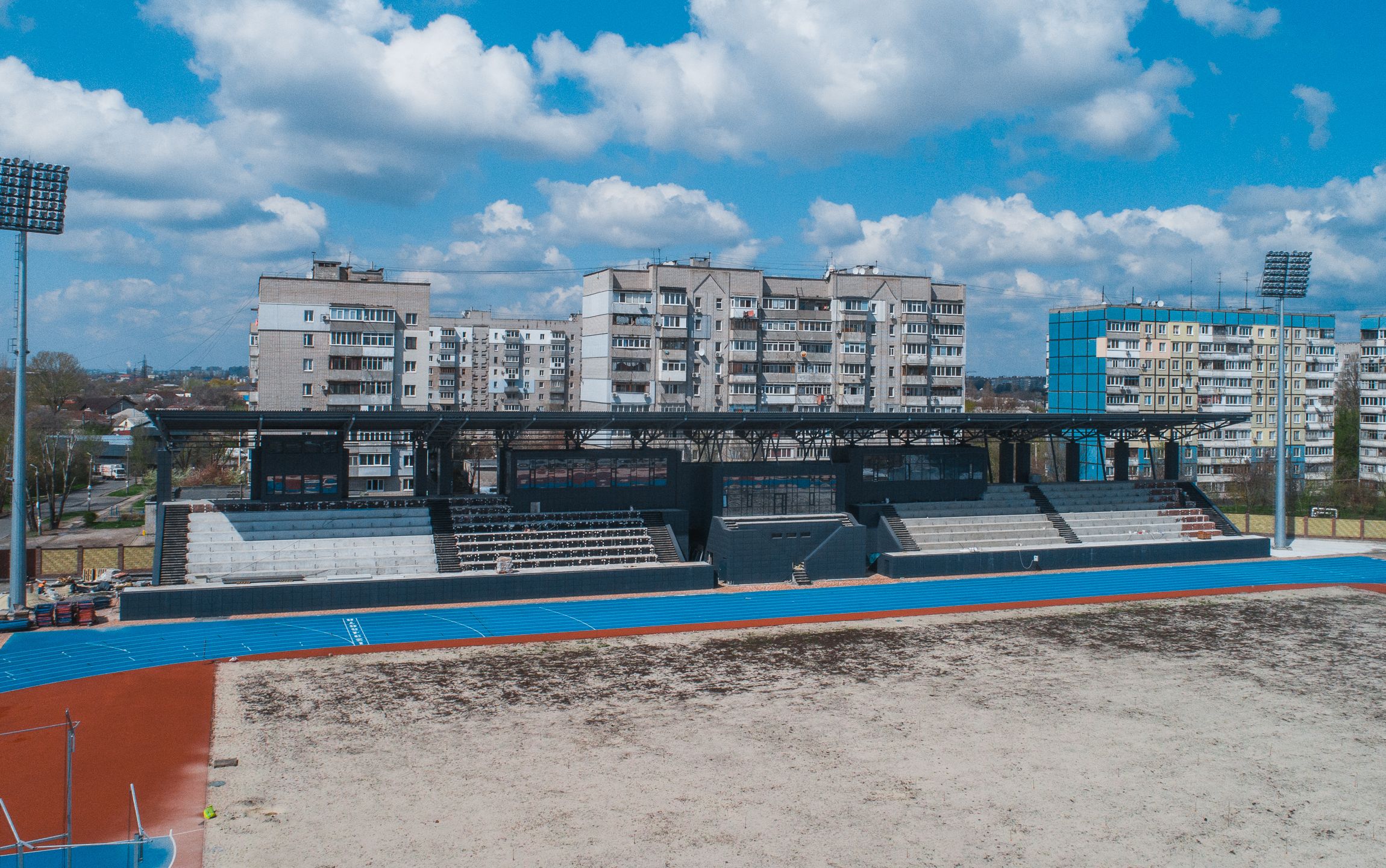 Трибуни для глядачів будуть вміщувати до 2000 осіб. Планується встановити 1008 полімерних сидінь на північній трибуні, а на центральній – 1138. Також на стадіоні буде VIP-трибуна на 18 осіб з теплоізоляцією та опаленням. Відбудовується і конференц-зала на 94 місця.